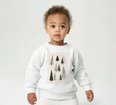 Onze baby sweatshirts bestaan uit 85% biologisch katoen en 15% gerecycled polyester.