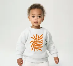 Onze baby sweatshirts bestaan uit 85% biologisch katoen en 15% gerecycled polyester.
