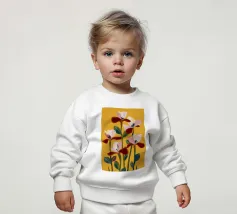 Onze baby sweatshirts bestaan uit 85% biologisch katoen en 15% gerecycled polyester.