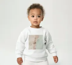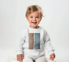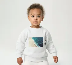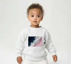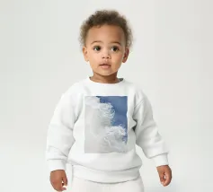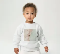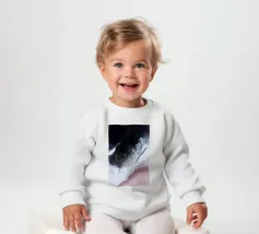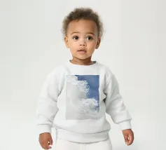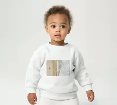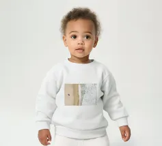 Onze baby sweatshirts bestaan uit 85% biologisch katoen en 15% gerecycled polyester.