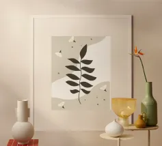 Breng een vleugje natuurlijke sereniteit in je huis met Eucalyptus Whisper. Dit minimalistische botanische kunstwerk heeft zachtgroene eucalyptusbladeren met fijne details en rustgevende tinten op een witte achtergrond. Perfect voor moderne, Scandinavische of boho interieurs, het voegt een gevoel van frisheid en evenwicht toe aan elke ruimte. Dit kunstwerk is ideaal voor woonkamers, slaapkamers of kantoren en belichaamt de stille schoonheid en tijdloze elegantie van de natuur.