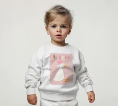 Onze baby sweatshirts bestaan uit 85% biologisch katoen en 15% gerecycled polyester.