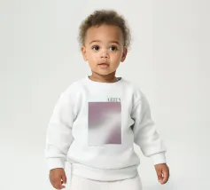 Onze baby sweatshirts bestaan uit 85% biologisch katoen en 15% gerecycled polyester.