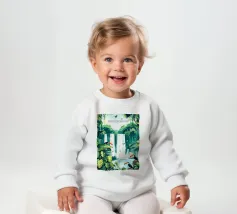 Onze baby sweatshirts bestaan uit 85% biologisch katoen en 15% gerecycled polyester.