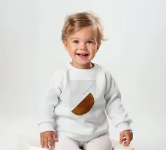 Onze baby sweatshirts bestaan uit 85% biologisch katoen en 15% gerecycled polyester.