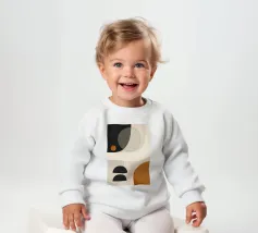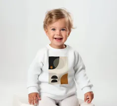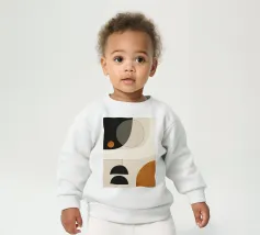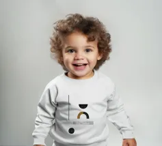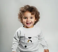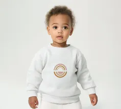 Onze baby sweatshirts bestaan uit 85% biologisch katoen en 15% gerecycled polyester.