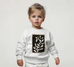 Onze baby sweatshirts bestaan uit 85% biologisch katoen en 15% gerecycled polyester.