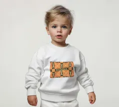 Onze baby sweatshirts bestaan uit 85% biologisch katoen en 15% gerecycled polyester.