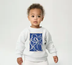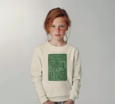 Onze baby sweatshirts bestaan uit 85% biologisch katoen en 15% gerecycled polyester.