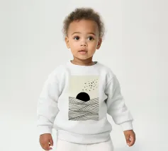 Onze baby sweatshirts bestaan uit 85% biologisch katoen en 15% gerecycled polyester.