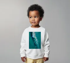 Onze baby sweatshirts bestaan uit 85% biologisch katoen en 15% gerecycled polyester.