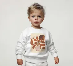 Onze baby sweatshirts bestaan uit 85% biologisch katoen en 15% gerecycled polyester.
