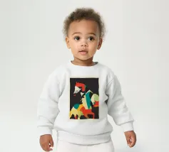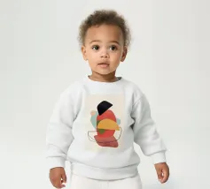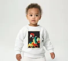 Onze baby sweatshirts bestaan uit 85% biologisch katoen en 15% gerecycled polyester.