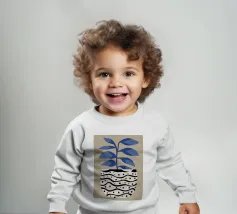 Onze baby sweatshirts bestaan uit 85% biologisch katoen en 15% gerecycled polyester.