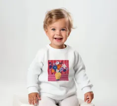Alle baby sweatshirts worden geproduceerd en bedrukt door onze lokale betrouwbare partner.