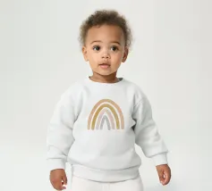 Onze baby sweatshirts bestaan uit 85% biologisch katoen en 15% gerecycled polyester.
