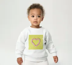 Onze baby sweatshirts bestaan uit 85% biologisch katoen en 15% gerecycled polyester.