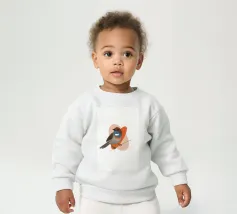 Onze baby sweatshirts bestaan uit 85% biologisch katoen en 15% gerecycled polyester.