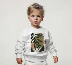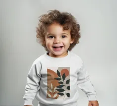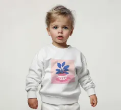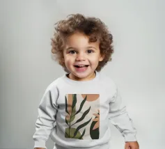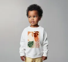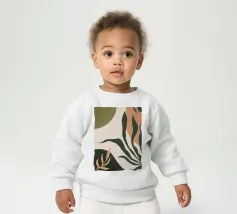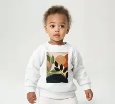 Onze baby sweatshirts bestaan uit 85% biologisch katoen en 15% gerecycled polyester.