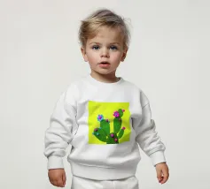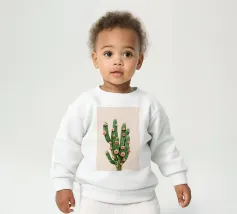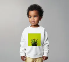 Onze baby sweatshirts bestaan uit 85% biologisch katoen en 15% gerecycled polyester.