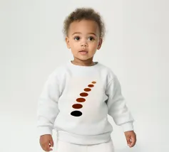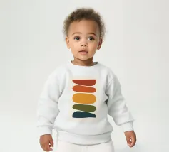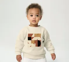 Onze baby sweatshirts bestaan uit 85% biologisch katoen en 15% gerecycled polyester.