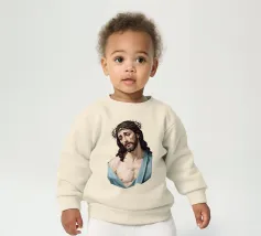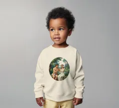 Onze baby sweatshirts bestaan uit 85% biologisch katoen en 15% gerecycled polyester.