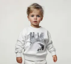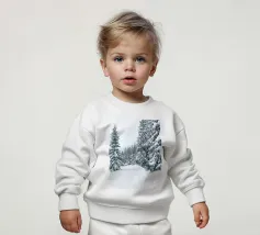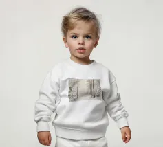 Onze baby sweatshirts bestaan uit 85% biologisch katoen en 15% gerecycled polyester.