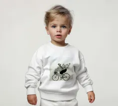 Onze baby sweatshirts bestaan uit 85% biologisch katoen en 15% gerecycled polyester.