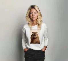 Een schattige capibara-illustratie omringd door motiverende tekst. De woorden moedigen individualiteit aan met een humoristische twist en benadrukken de charme van capibara's.