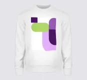 Geometrische vormen in paars, lavendel en groen zijn gerangschikt in een minimalistisch ontwerp. De compositie creëert een moderne en abstracte uitstraling met gedurfde kleurblokken die elkaar onder verschillende hoeken kruisen.