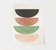 Voeg een vleugje minimalistische charme toe aan je interieur met deze levendige abstracte moderne mid century art print, met een betoverende mix van geometrische, vrij vloeiende aquarelvormen tegen een zachte, crèmekleurige neutrale achtergrond. Met zijn warme Scandinavisch-Japanse uitstraling is het niet zomaar kunst - het is een vibe.