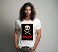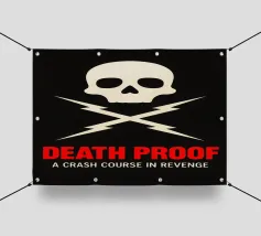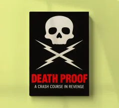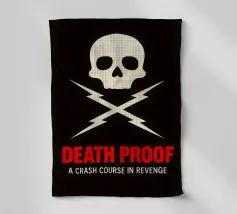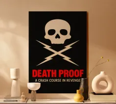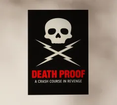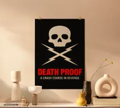 Death Proof Print, Alternatieve filmposter, zwart-wit, Minimal Muurkunst, Schedel, Stuntauto, Muscle Car, Kwaliteitsafdrukken, Filmfans Geschenk