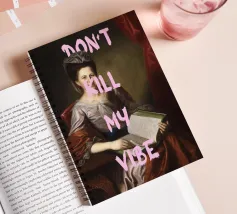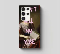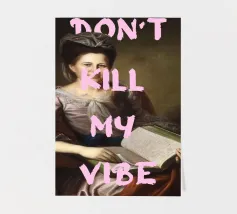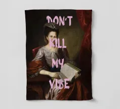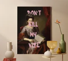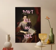 Bescherm je energie met "Don't Kill My Vibe", een fascinerende pop-artprint die klassieke portretten combineert met een moderne, assertieve boodschap. Dit opvallende kunstwerk toont een vorstelijk historisch figuur, elegant poserend met een boek, haar uitdrukking sereen en onbewogen. De vetgedrukte, warmroze tekst "DON'T KILL MY VIBE" overlapt de afbeelding en maakt een zelfverzekerd en stijlvol statement over het behoud van positiviteit en persoonlijke ruimte. Het is een perfecte mix van tijdloze elegantie en eigentijdse zelfexpressie, ideaal om een vleugje empowerment en een goede vibe toe te voegen aan elk modern interieur. Gemaakt op een uitzonderlijke