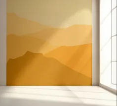zandkleurenpalet, deze gestileerde duinen die in de verte verdwijnen verdampt door de hitte van de zon, ik weet niet of je een luchtspiegeling kunt zien als je ernaar kijkt, maar ze zullen zeker een warme en uitnodigende uitstraling creëren in je woon- en werkruimten