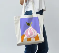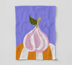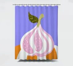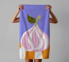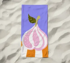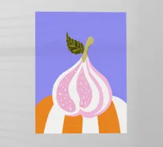Deze minimalistische illustratie toont verse vijgen op een paars en groen tafelkleed met oranje strepen. Het straalt een mediterrane sfeer uit en viert de gezondheid en versheid van fruit. Ideaal als keukenkunstwerk en brengt de mediterrane zomer bij je thuis!