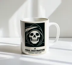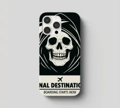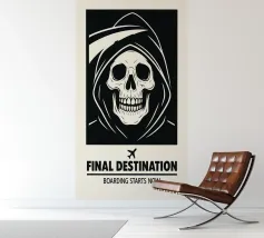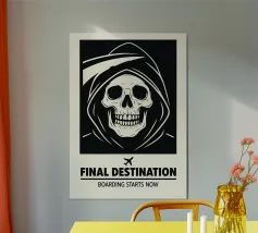 Final Destination Print, Alternatieve Film Poster, Zwart & Wit, Minimal Muurkunst, Schedel, Dood, Magere Hein, Vlucht, Instappen, Filmfans Geschenk