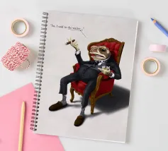 Een geestige illustratie van een victoriaanse pad die zijn ongeluk in het restaurant beschrijft.