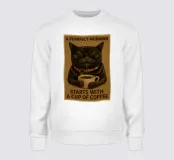 Grappige Kat Een perfecte ochtend begint met een kopje koffie