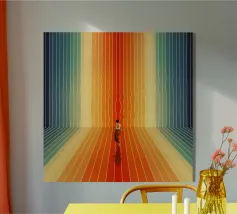 Transformeer je omgeving met dit levendige behangontwerp. Here I Come brengt een uitbarsting van kleur en energie in elke kamer en nodigt uit tot positiviteit en creativiteit. Dit ontwerp is ideaal voor moderne interieurs en voegt een dynamisch tintje toe dat iedereen die binnenkomt inspireert. Perfect voor accentmuren of een complete make-over van je kamer, het zal zeker opvallen en je inrichting moeiteloos verbeteren. Het kunstwerk is geïnspireerd op de esthetiek en kleuren uit de jaren 60 en 70.