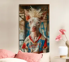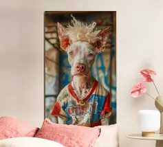 Absurde composities met mensenhonden. Mensenhonden die, net als wij, in Parijs, Los Angeles of Londen wonen en die, net als wij, gepassioneerd zijn door mode, auto's of helemaal niets. Honden die gedesillusioneerd, geamuseerd of geliefd zijn. Hippies en getatoeëerde honden. Kortom, honden die net als wij zijn. Of zijn wij zoals zij? Duik in de artistieke wereld van Dogland, een exclusieve collectie gewijd aan iedereen die zijn hond als een lid van de familie beschouwt. Hier is elke hondenposter een kunstwerk bedacht met humor, tederheid of elegantie. Of je nu een fan bent van buldoggen, teckels of corgi's, je zult de muurposter vinden die je huis zal laten blaffen van geluk. Geef je muren een honds accent met originele illustraties, afgedrukt op kwaliteitspapier, klaar om je interieur te sublimeren. Dogland is meer dan een winkel: het is een liefdesverklaring aan honden.