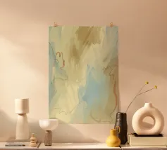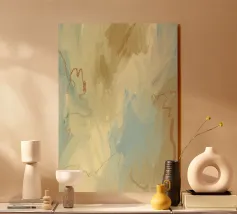 In "Muted Flow" creëert de meesterlijk aangebrachte olie golven van zandbeige, warm wit en parelgrijs. Het oppervlak onthult een tactiel, bijna levend materiaal dat het licht lijkt op te vangen en zachtjes weer loslaat. Het is een abstract schilderij dat de ruimte kalmeert en verwarmt.