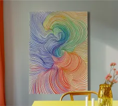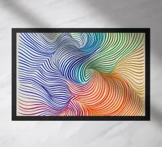Dompel jezelf onder in een wereld van hypnotiserende lijnen en krachtige kleuren! Deze moderne kunstposter combineert zachte overgangen van blauw, groen, geel en rood in een dynamische, abstracte compositie. Perfect voor iedereen die een vleugje beweging en energie wil toevoegen aan zijn leefruimte. Ideaal voor woonkamers, kantoren of creatieve studio's. De perfecte mix van optische kunst (op art) en minimalistische esthetiek!