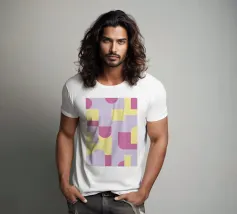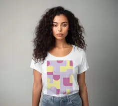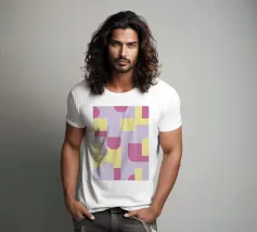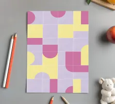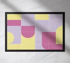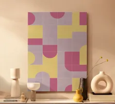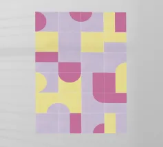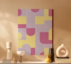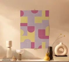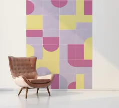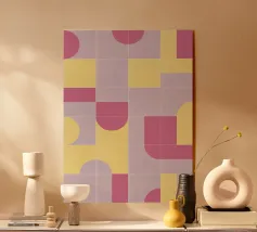Mid-eeuws modern patroon geïnspireerd op mid-eeuwse tegelvloeren en muurschilderingen. Strakke lijnen, eenvoudige vormen, rumoerige textuur en pastelpalet.