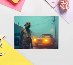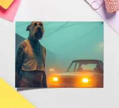 Absurde composities met mensenhonden. Mensenhonden die, net als wij, in Parijs, Los Angeles of Londen wonen en die, net als wij, gepassioneerd zijn door mode, auto's of helemaal niets. Honden die gedesillusioneerd, geamuseerd of geliefd zijn. Hippies en getatoeëerde honden. Kortom, honden die net als wij zijn. Of zijn wij zoals zij? Duik in de artistieke wereld van Dogland, een exclusieve collectie gewijd aan iedereen die zijn hond als een lid van de familie beschouwt. Hier is elke hondenposter een kunstwerk bedacht met humor, tederheid of elegantie. Of je nu een fan bent van buldoggen, teckels of corgi's, je zult de muurposter vinden die je huis zal laten blaffen van geluk. Geef je muren een honds accent met originele illustraties, afgedrukt op kwaliteitspapier, klaar om je interieur te sublimeren. Dogland is meer dan een winkel: het is een liefdesverklaring aan honden.