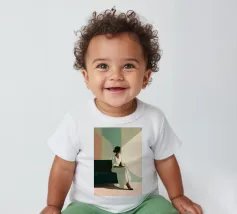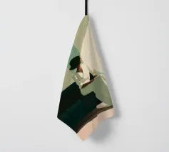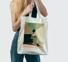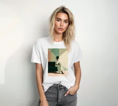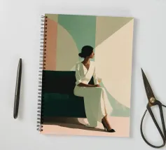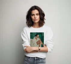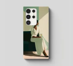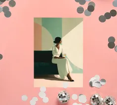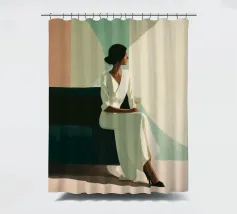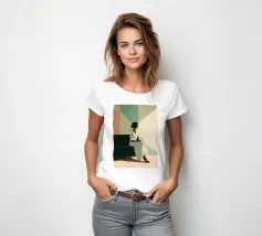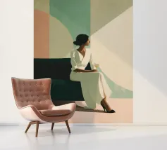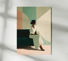 Door het mengen van mid-century tinten en moderne gratie, verkent dit stuk het snijpunt van vorm en eenzaamheid. Het zachte kleurenpalet en de gedurfde geometrie weerspiegelen de rustige aanwezigheid van de vrouw, waardoor een compositie ontstaat die aanvoelt als visuele jazz - verfijnd en moeiteloos.