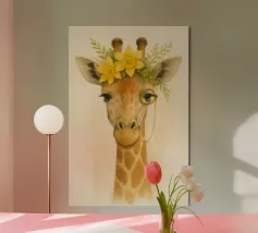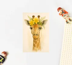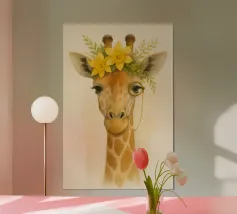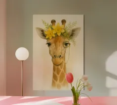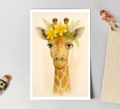 Stap in een wereld van speelse elegantie met The Dapper Giraffe. Deze charmante aquarelillustratie toont een verfijnde giraffe versierd met een monocle en een levendige kroon van gele narcissen en groen. Een heerlijke mix van natuur en adel, dit kunstwerk voegt een vleugje verfijnde eigenzinnigheid toe aan elke ruimte. Perfect voor dierenliefhebbers, designliefhebbers of iedereen die zijn muren wil opfleuren met een vleugje karakter en charme. Ideaal voor kinderkamers, woonkamers of eclectische galeriemuren.