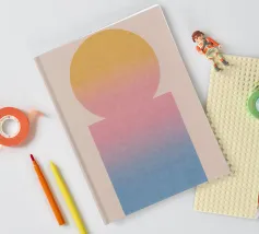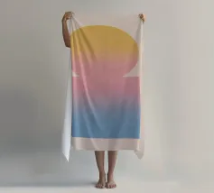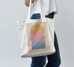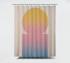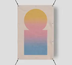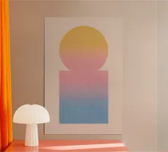 Een rustig, geometrisch kunstwerk met een sterk effect: cirkel en rechthoek smelten samen tot een harmonieuze eenheid via zachte kleurverlopen in geel, roze en blauw. Dit ontwerp brengt visueel evenwicht en subtiele kleur in elke kamer - ideaal voor moderne woonomgevingen, Scandinavische interieurs of creatieve werkruimtes.