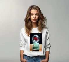 Treed binnen in een krachtige visie van kosmische verbeelding en futuristische fantasie. Astronaut die een levende zon vasthoudt in een surrealistisch kosmisch rijk toont een eenzame ruimteverkenner die boven een buitenaards landschap zweeft terwijl een stralende zon in het midden van het pak gloeit, omringd door rondcirkelende planeten. Het dramatische contrast tussen warm zonlicht en koele atmosferische tinten creëert een filmische, buitenwereldse sfeer vol mysterie en energie. Dit kunstwerk symboliseert schepping, evenwicht en de verbinding van de mensheid met het universum.