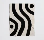 Een harmonieus golfpatroon in zwart op een crèmekleurige achtergrond die de minimalistische boho-stijl perfect weergeeft. Dit ontwerp wordt gekenmerkt door zachte, vloeiende lijnen die rust en evenwicht uitstralen. Als muurschildering, kussen, mok of hoesje voor je mobiele telefoon - dit abstracte kunstwerk brengt elegantie en moderniteit in elke kamer. Ideaal voor designliefhebbers die op zoek zijn naar stijlvolle accenten en een geweldig cadeau voor creatieve geesten.
