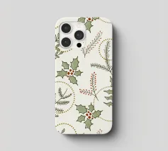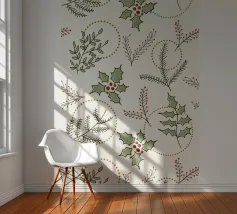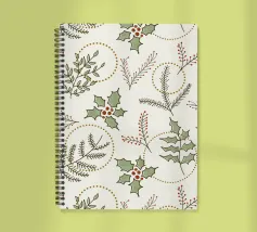 Vintage christmas patroon, klassieke winterkleuren en handgetekende winterplant.